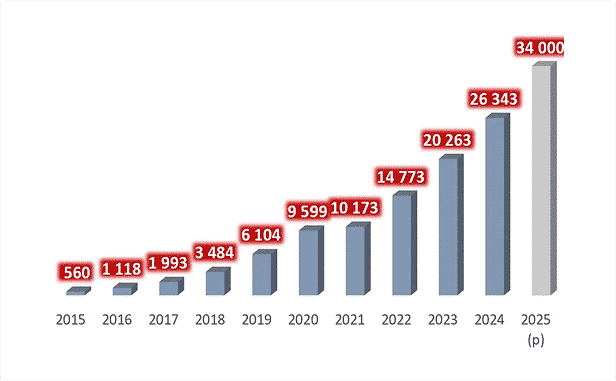 Etwa 30.000 Nutzer bis Ende Juni 2024, mit einem durchschnittlichen jährlichen Wachstum von +52% seit 2015!