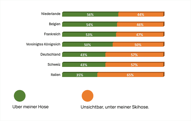Je nach Ihrem Wohnsitzland: Tragen Sie das Ski-Mojo über oder unter Ihrer Skihose?