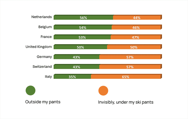 Depending on where you live, do you wear Ski~Mojo over or under your ski pants?