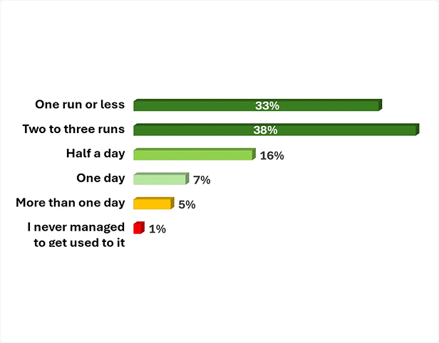 87% of users feel comfortable with their Ski~Mojo after half a day of skiing. For the other users, it doesn’t take much more time.